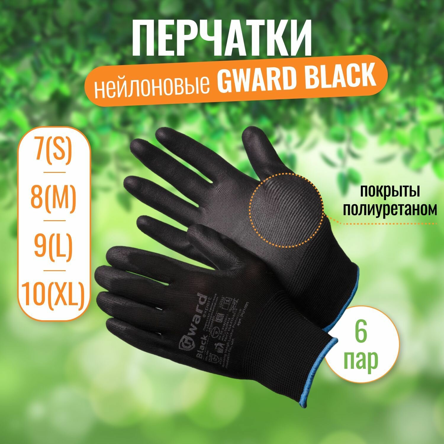 Перчатки нейлоновые, размер S Gward Touch Black черные, 12 пар.