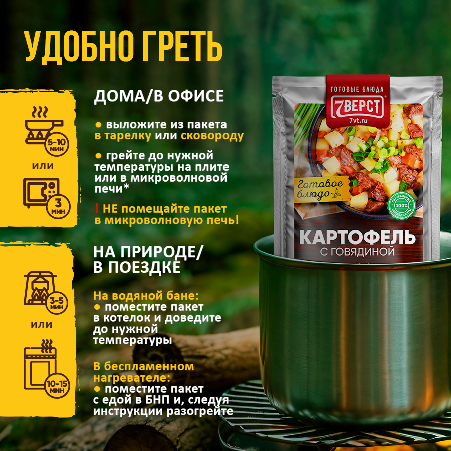 7 вёрст Картофель с говядиной. Готовая еда в реторт-пакете. Консервы натуральные. Набор 24 уп. по 300 г информация: