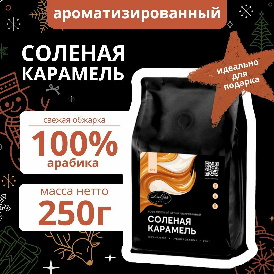 10 цен на Кофе молотый ароматизированный Соленая карамель 100% арабика, 250 гр