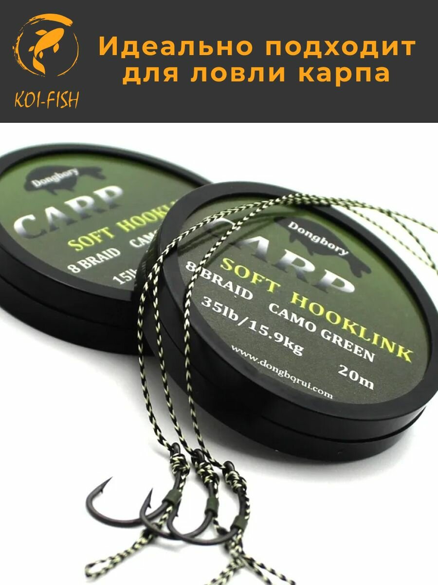 Мягкий поводковый материал 20м 35LB (15,9 кг) Зелёный камуфляж camo green для ловли карпа 650 ₽