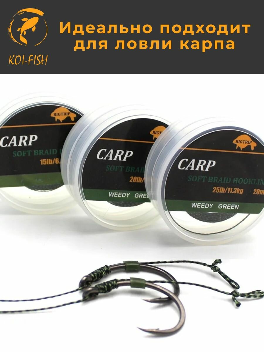 Мягкий поводковый материал 20м 25LB (11,3 кг) Зелёный камуфляж camo green для ловли карпа 650 ₽