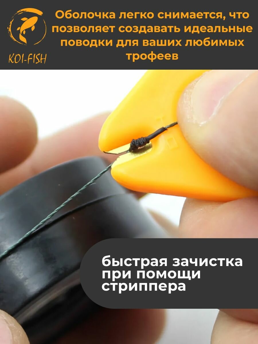 Поводковый материал в оболочке Semi-Stiff (полужёсткий) 15LB (6.8кг), 5м Зелёный камуфляж WEEDY GREEN рыболовный. Поводок в оплётке для ловли карпа 549 ₽