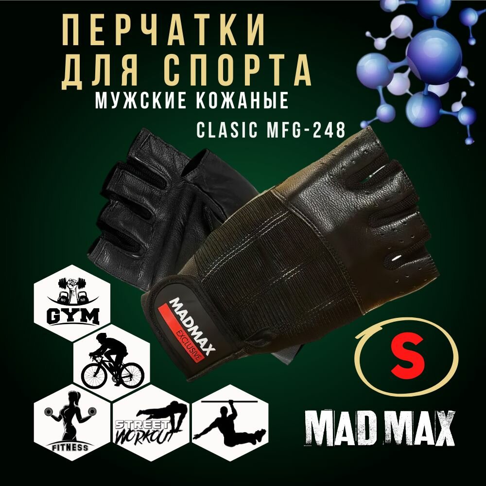 Перчатки мужские для фитнеса кожаные MadMax Clasic MFG-248 Black, Размер S - Для тяжелой атлетики, воркаута, кроссфита, велоспорта, из натуральной кожи (арт.2258) информация: