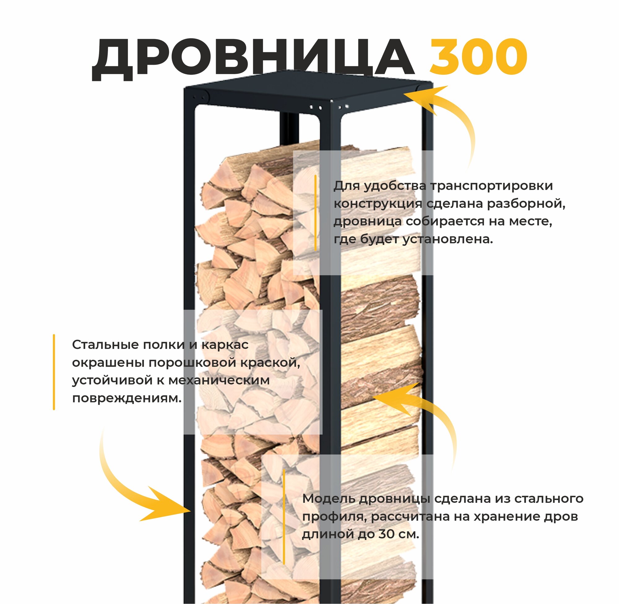 Отзывы на Дровница "Везувий вертикаль 300", разборная, черная, 115х30х30см, сталь, хай-тек