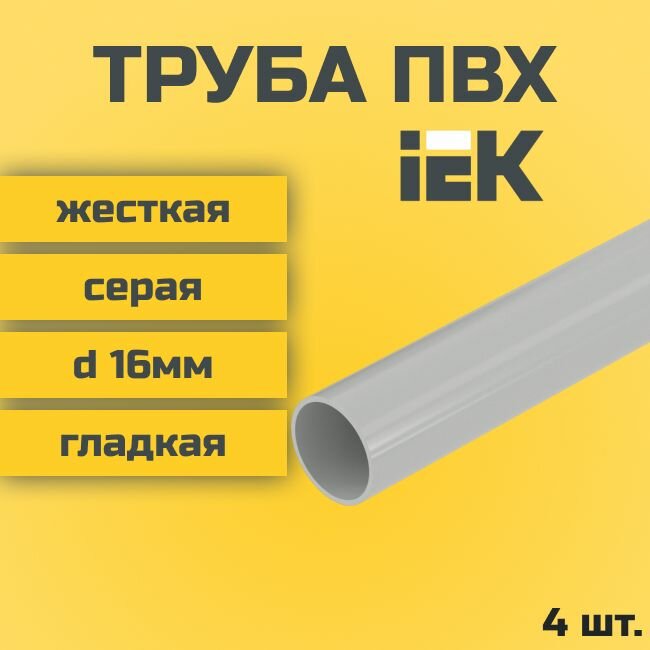Отзывы на Труба ПВХ IEK гладкая, жесткая, легкая (класс 2) d16мм, серая L1000 - 4шт.