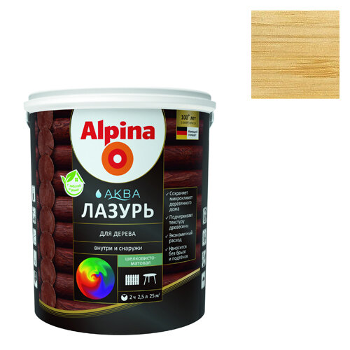 Защитная лазурь для дерева "Alpina" Аква, 2,5 литра, цвет: сосна информация: