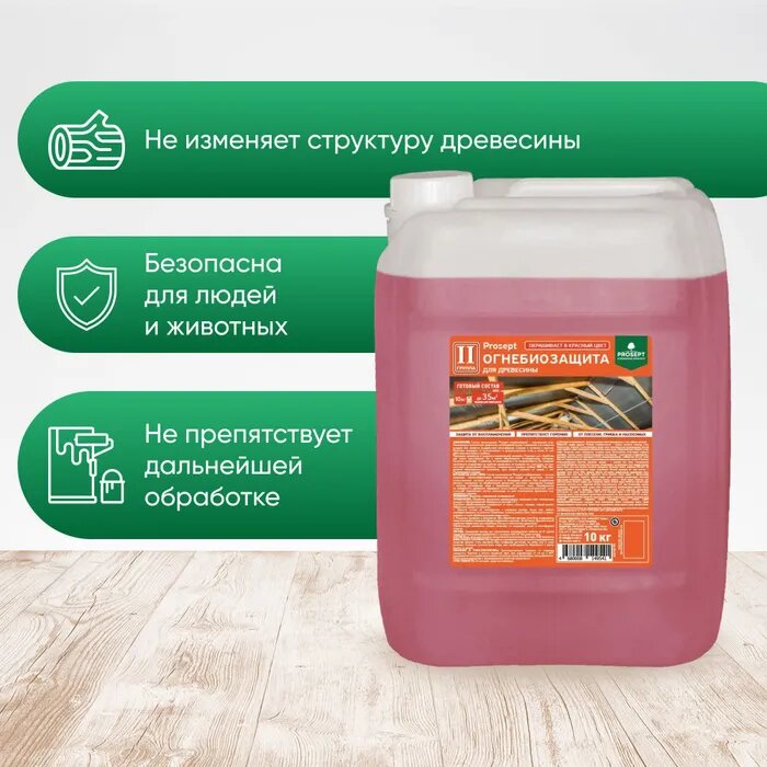 Отзывы на PROSEPT огнебиозащита для древесины, 2 группа, красный готовый состав / 10 кг