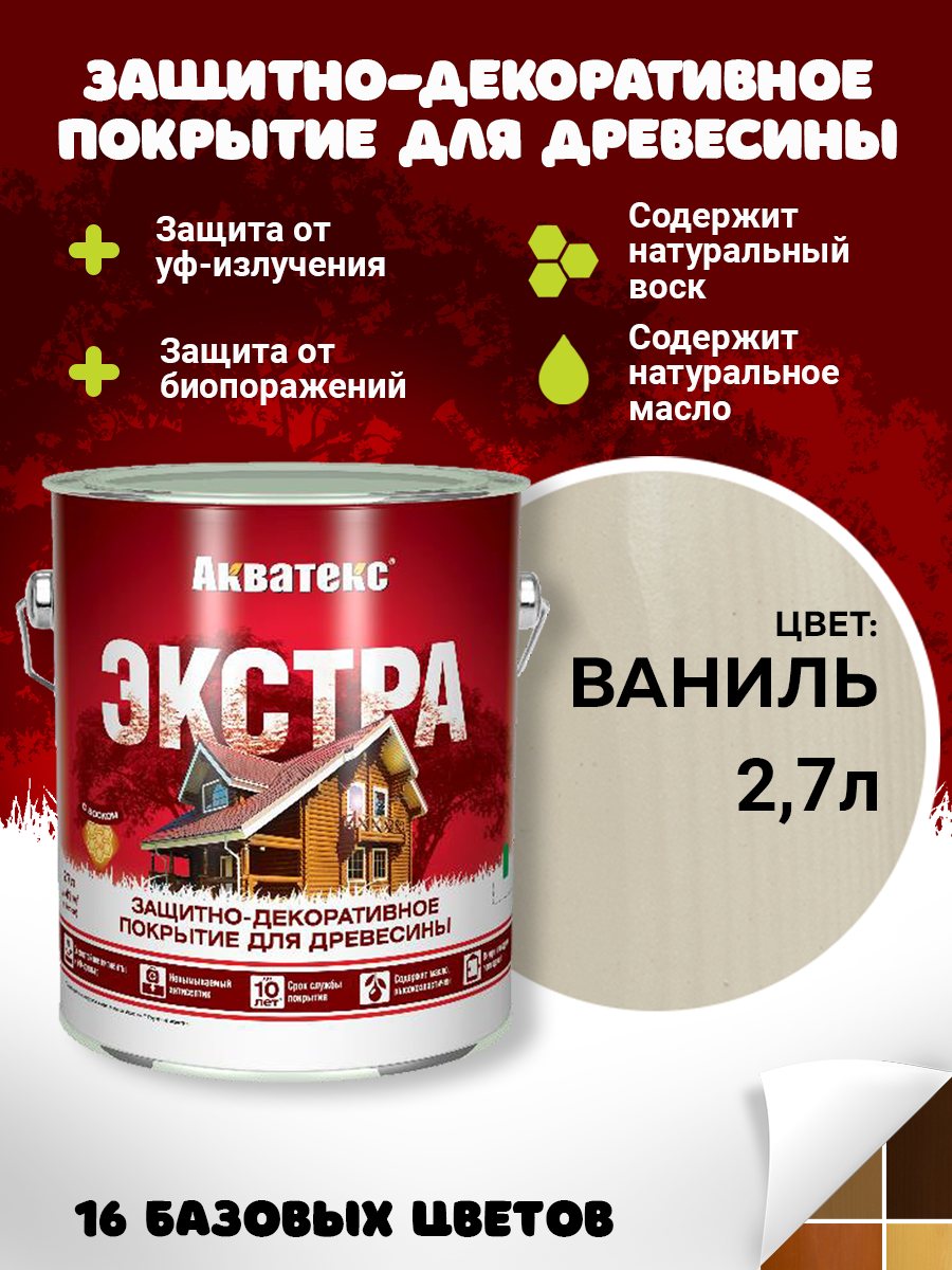Антисептик Акватекс Экстра 2.7л Ваниль Глянцевый для Внутренних и Наружных Работ. информация: