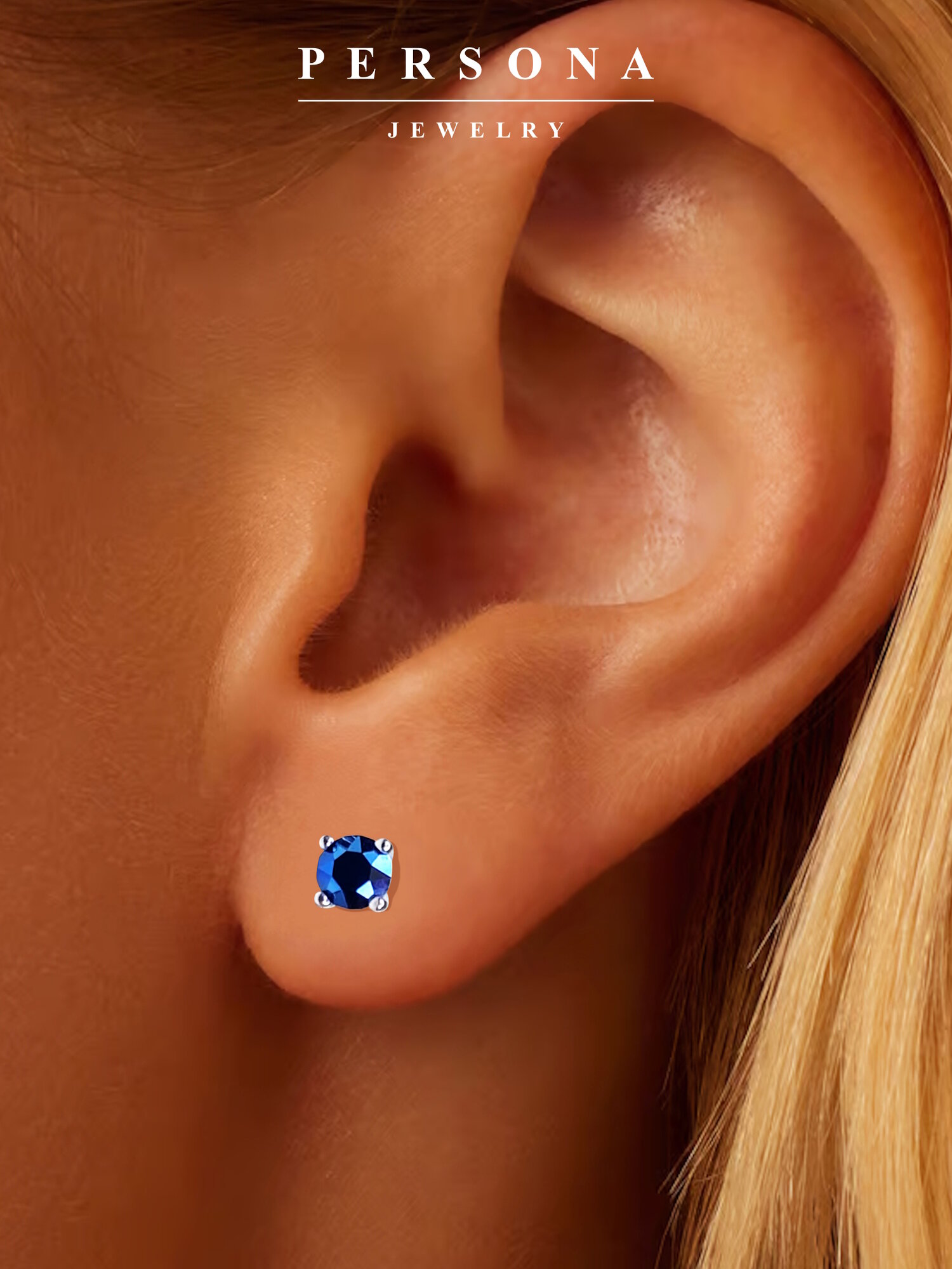Серьги пусеты ПЕРСОНА, серебро, 925 проба, родирование, кристаллы Swarovski, размер 4 мм, длина 1.3 см, , синий 1 444 ₽