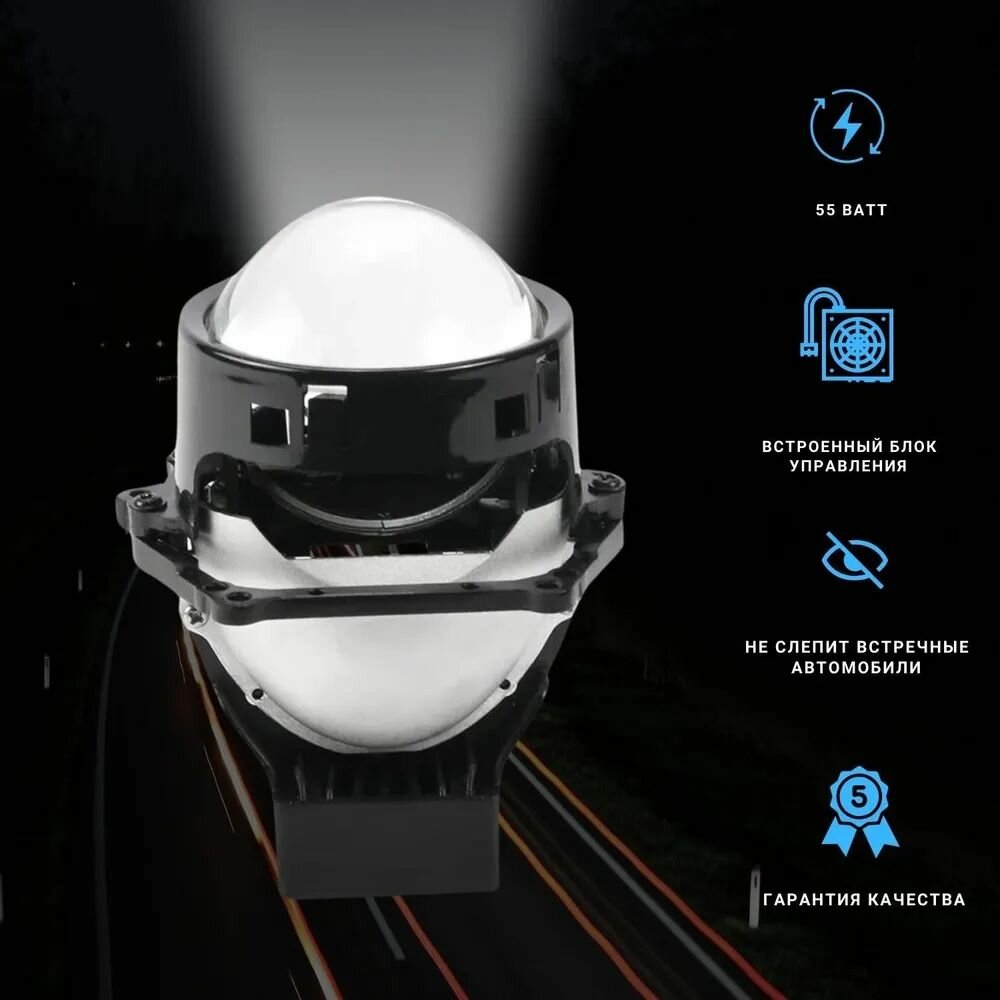 Светодиодные би лед модули ближнего/дальнего света Bi LED ZMB K11, 12V, 5500K, 3.0", комплект, 2 линзы