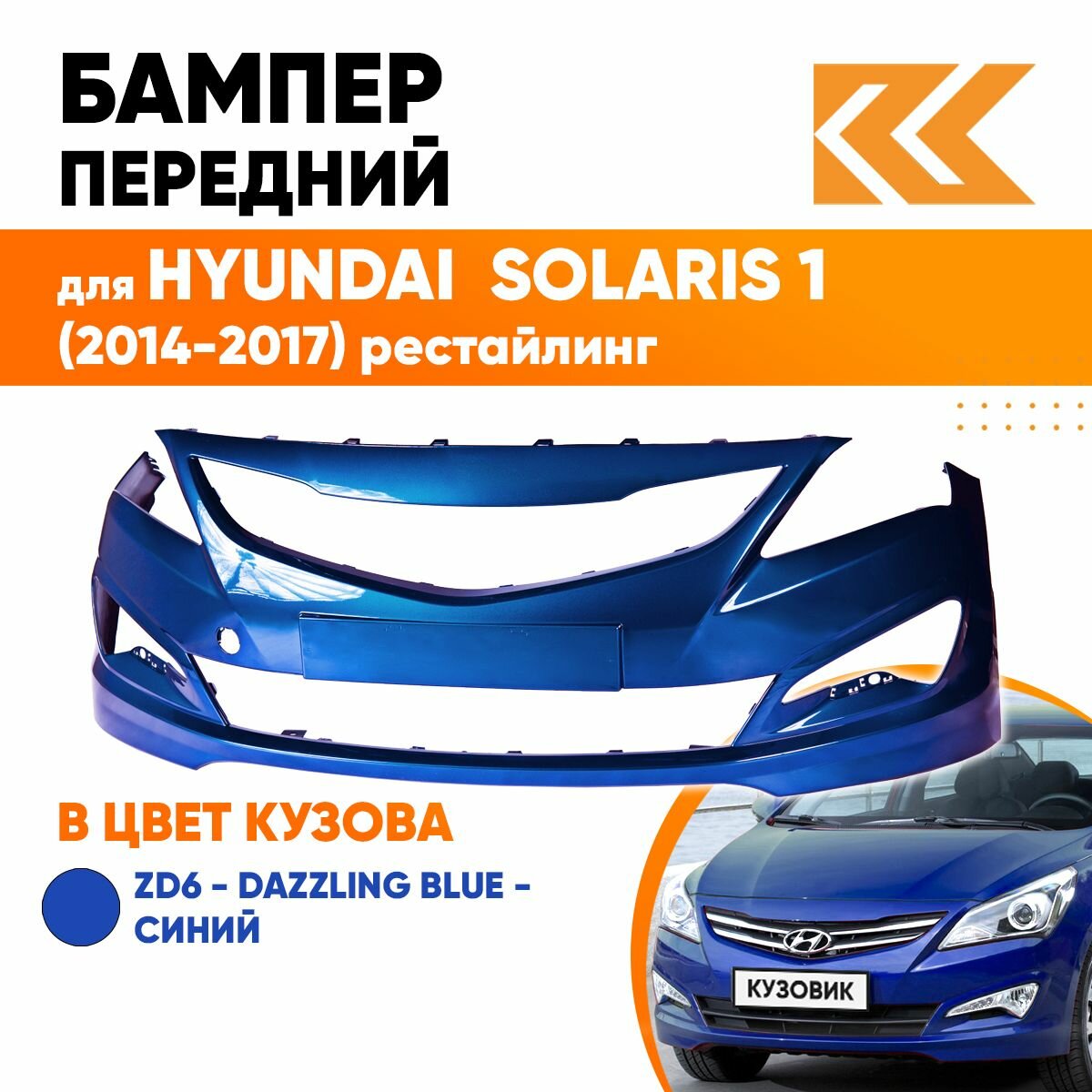 10 цен на Бампер передний в цвет кузова для Хендай Солярис 1 Hyundai Solaris 1 (2014-2017) рестайлинг ZD6 -Dazzling Blue- Синий