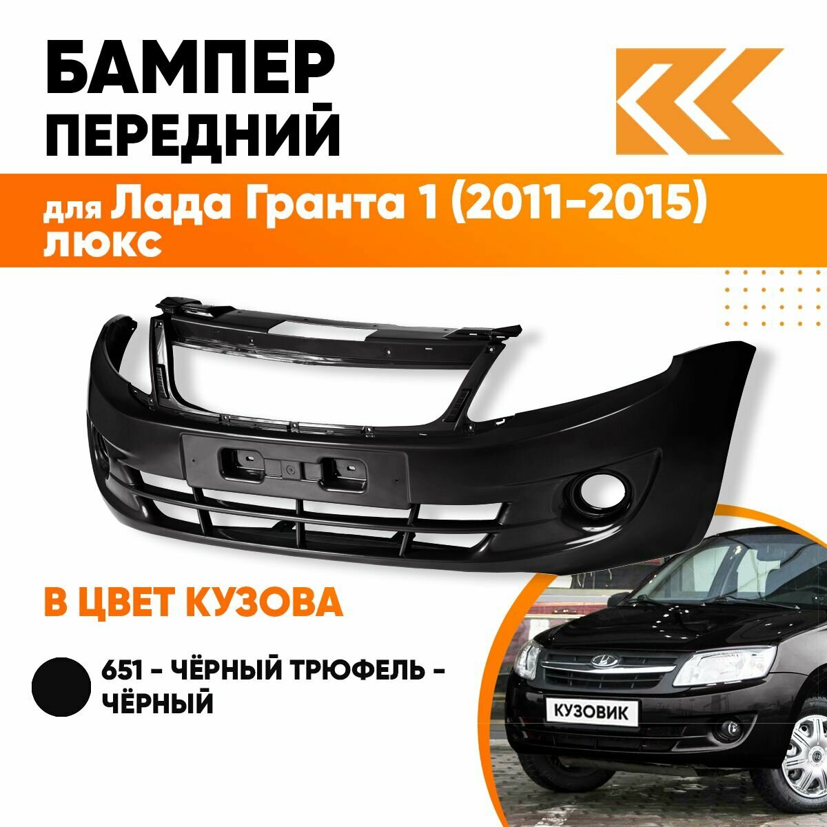 Отзывы на Бампер передний в цвет кузова для Лада Гранта 1 2190 (2011-2015) люкс 651 - Черный трюфель - Черный