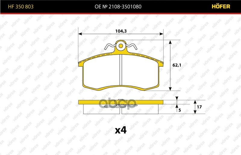 Колодки переднего тормоза ВАЗ 2108-15 Калина Приора Гранта HOFER HF350803 информация: