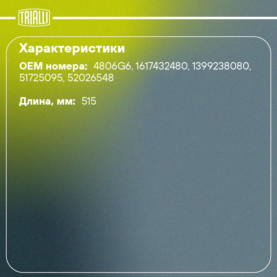| Соответствующие коды OE | 4806G6, 1617432480, 1399238080, 51725095, 52026548 |