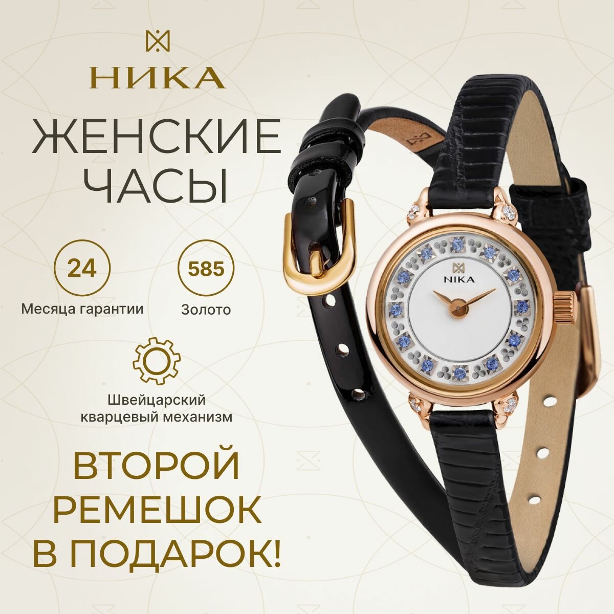 НИКА, Часы наручные женские золотые кварцевые "VIVA" 0311.2.1.16H + 2й ремешок для часов В подарок информация: