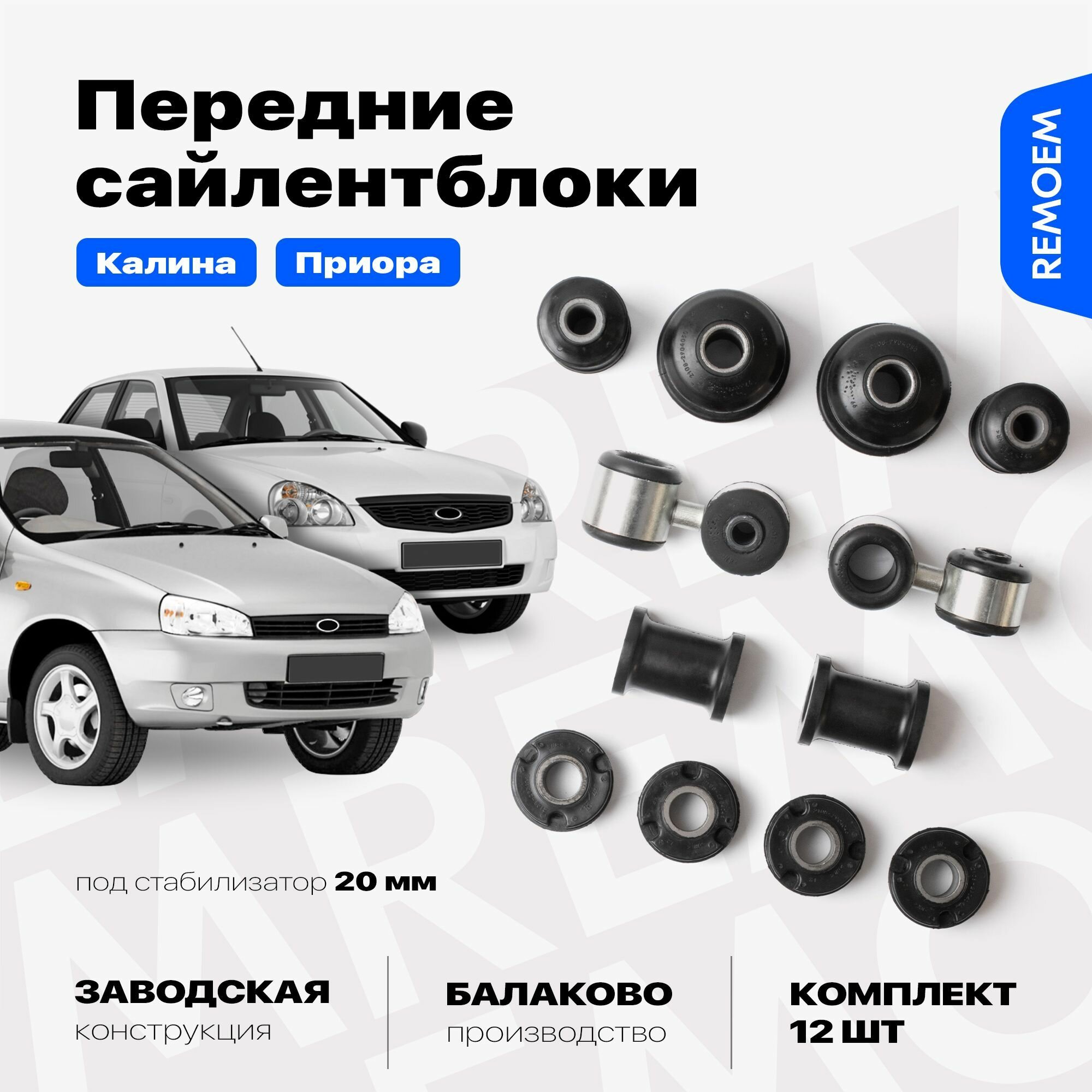 Отзывы на Сайлентблоки для Лада Приора Калина, ВАЗ 2170 1118 1119 1117 2172, резиновые под стабилизатор 20 мм, передние полный комплект 12 шт, Remoem / Priora Kalina