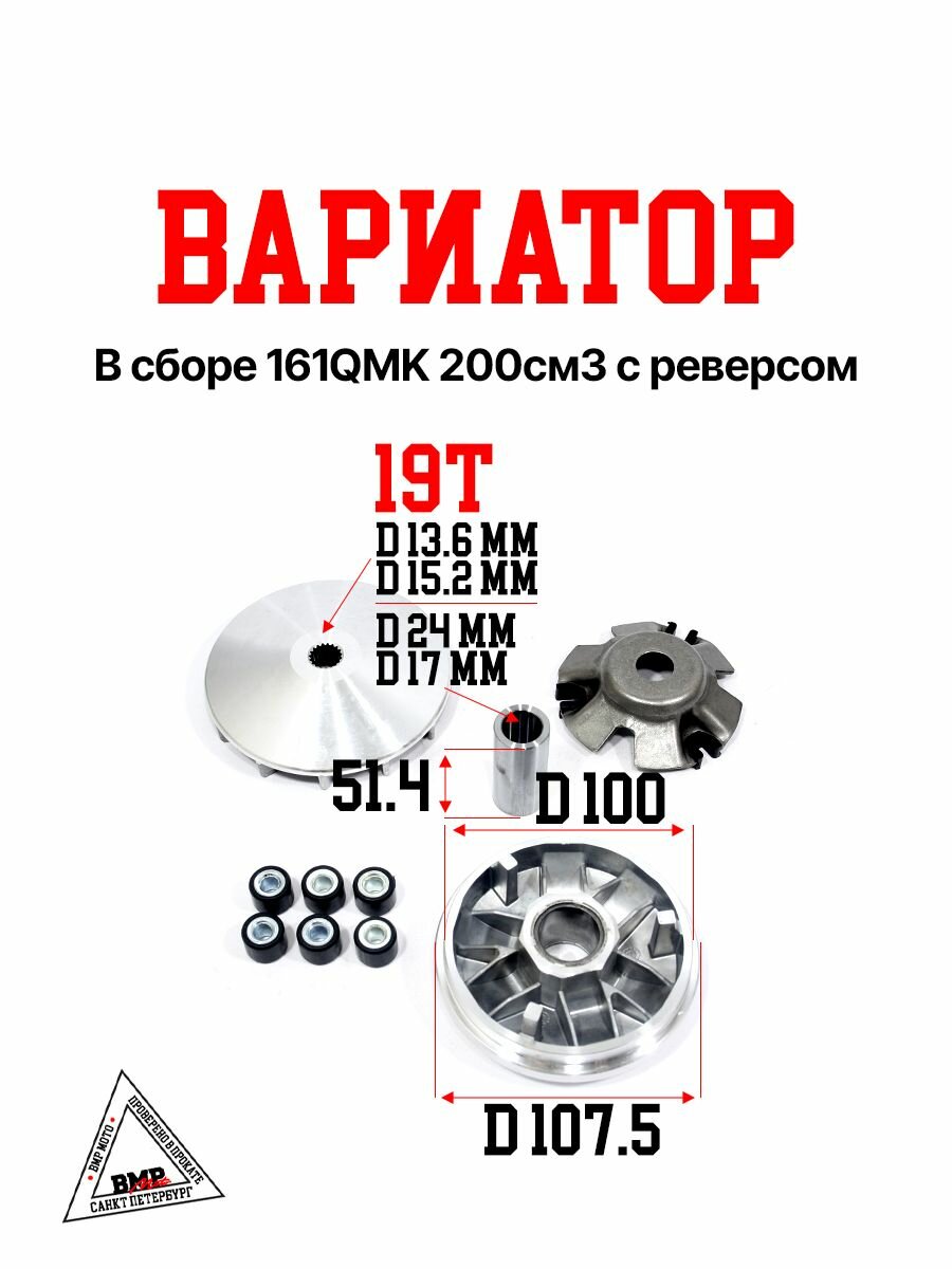 Вариатор в сборе 161QMK 200см3 с реверсом для ATV квадроцикла информация: