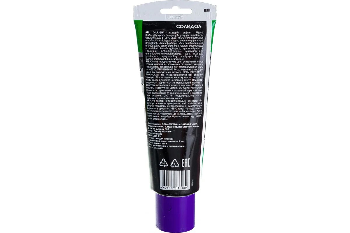 Солидол жировой OILRIGHT 250г в тубе OILRIGHT, смазка кальциевая, водостойкая информация: