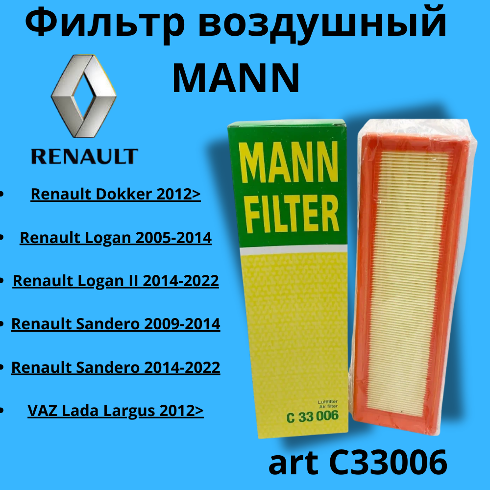 Отзывы на Фильтр воздушный LADA Лада, ВАЗ Largus Ларгус Renault Рено Logan Логан Sandero Сандеро C33006 165469466R