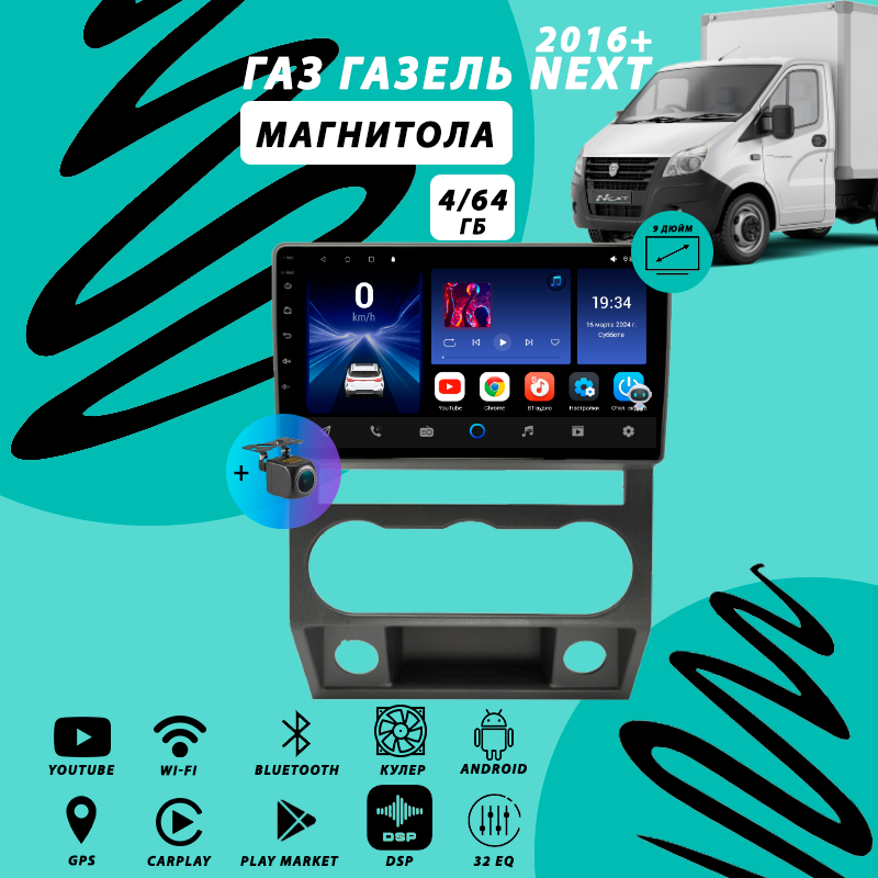 Магнитола ГАЗ Газель Next (2016+) 4Гб+64Гб/DSP/Android/Carplay/кулер/Wi-Fi/Bluetooth/2din/штатная магнитола информация: