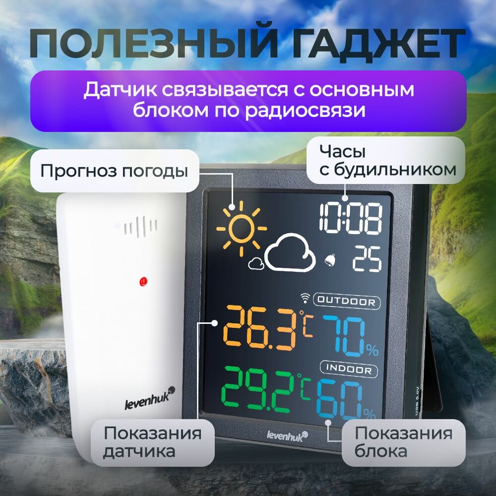 Термогигрометр Levenhuk Wezzer BASE L80 / Термометр гигрометр комнатный с наружным датчиком. Метеостанция. Измеритель влажности и температуры. Погодная станция. Температура+ влажность информация: