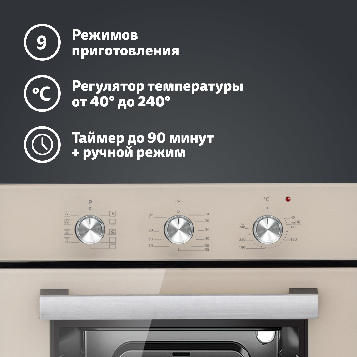 Духовой шкаф встраиваемый LEX EDM 077 C IV, 60 см, с конвекцией, механические ручки, объем 60 л, аналоговый таймер, телескопические направляющие.