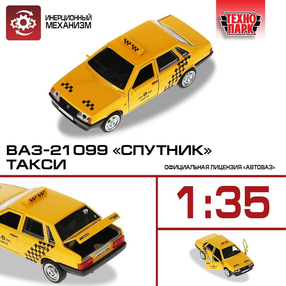 10 цен на Машинка детская Такси Лада ВАЗ 21099 Спутник 12 см, Технопарк, желтая, открываются двери и багажник, металлическая