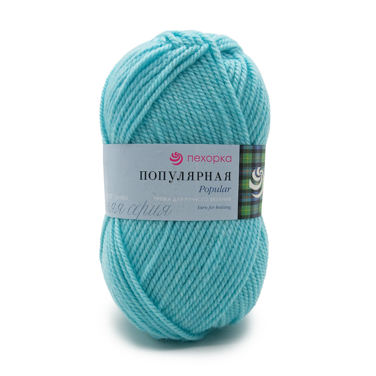Пряжа для вязания Пехорка Популярная цвет №045-Т. бирюза, комплект 1 моток, 50% шерсть, 50% акрил