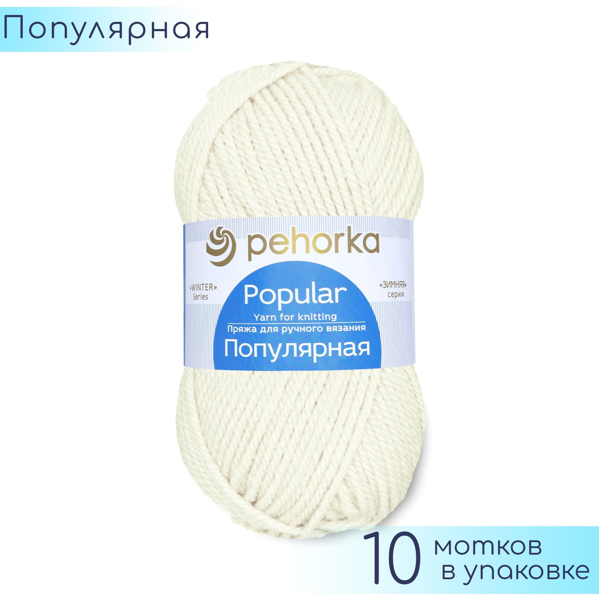 10 цен на Пряжа для вязания Пехорка 'Популярная' 100г, 133м (50% шерсть, 50% акрил) (01-Белый), 10 мотков