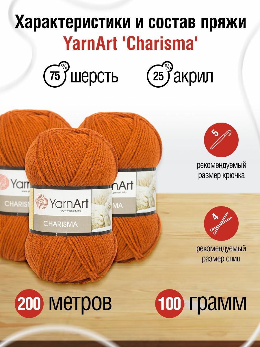 Пряжа для вязания YarnArt 'Charisma' 100г, 200м (75% шерсть, 25% акрил) (3027 терракот), 5 мотков информация: