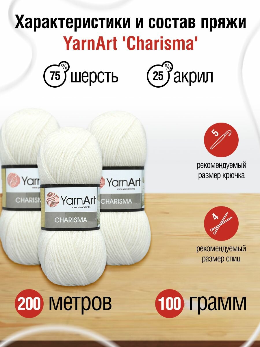Пряжа для вязания YarnArt 'Charisma' 100г, 200м (75% шерсть, 25% акрил) (501 белый), 5 мотков информация: