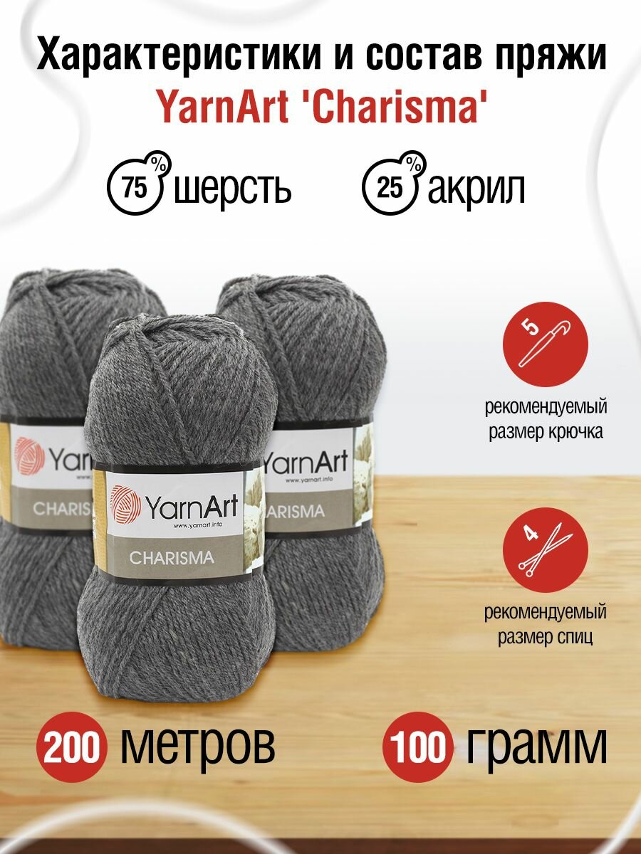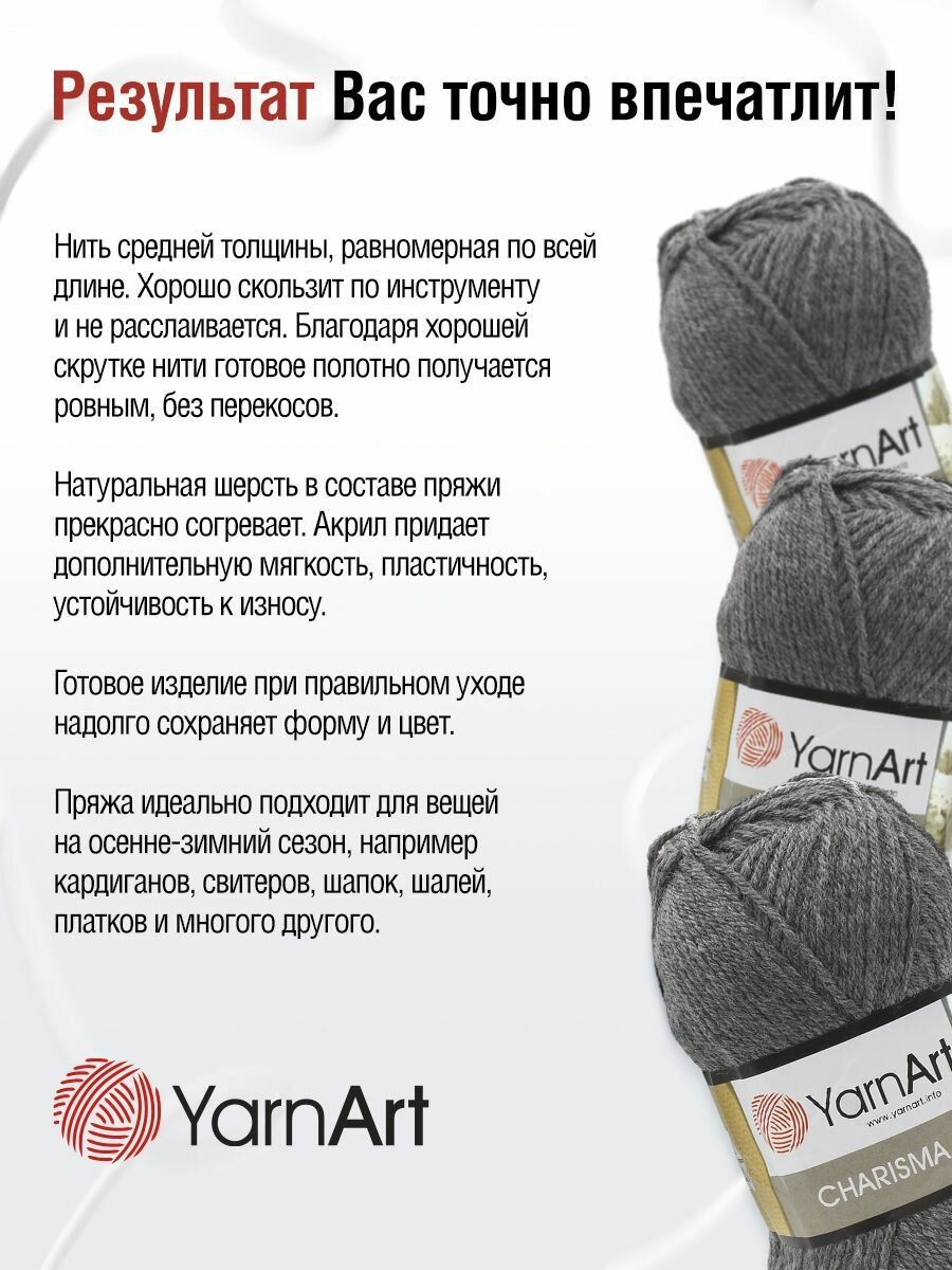 Пряжа для вязания YarnArt 'Charisma' 100г, 200м (75% шерсть, 25% акрил) (179 серый), 5 мотков информация: