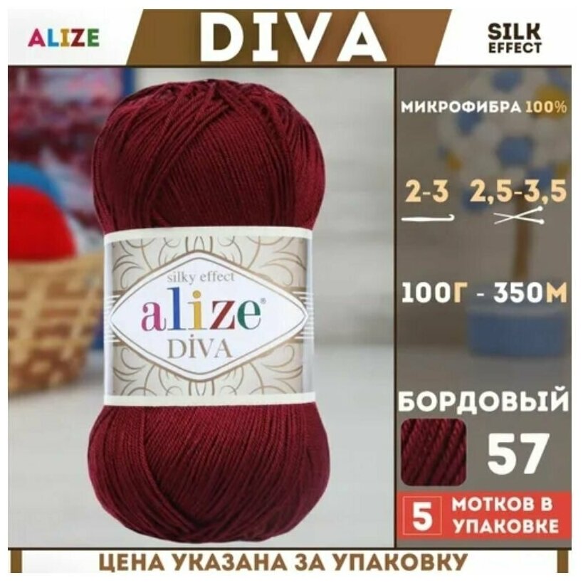 10 цен на Пряжа Alize Diva бордовый (57), 100%микрофибра, 350м, 100г, 5шт