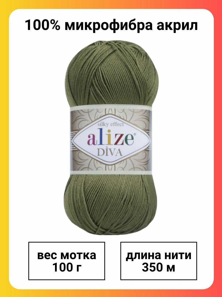 Пряжа Alize Diva - 1 шт, 567 хаки, 350м/100г, 100% микрофибра акрил /Ализе Дива/ 315 ₽