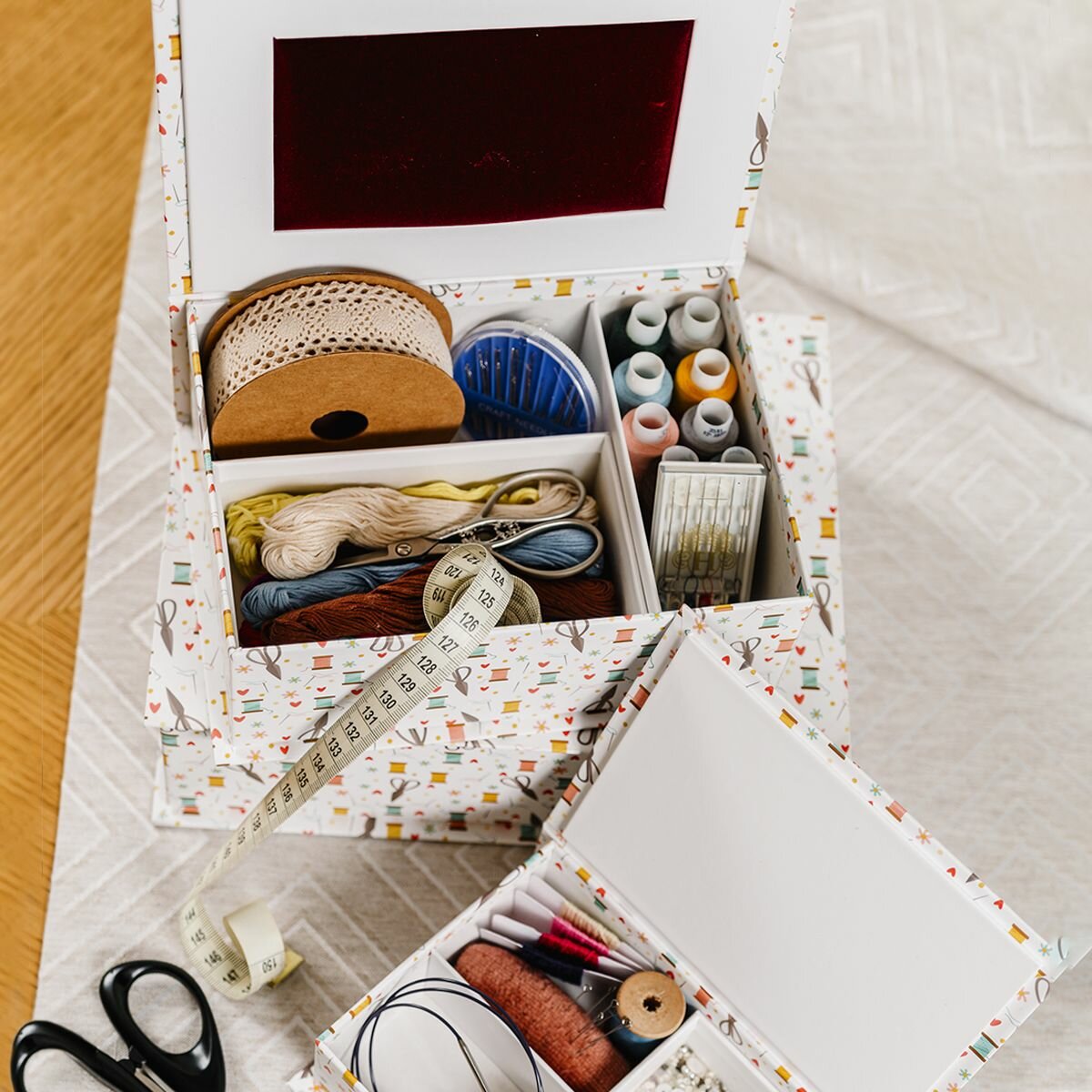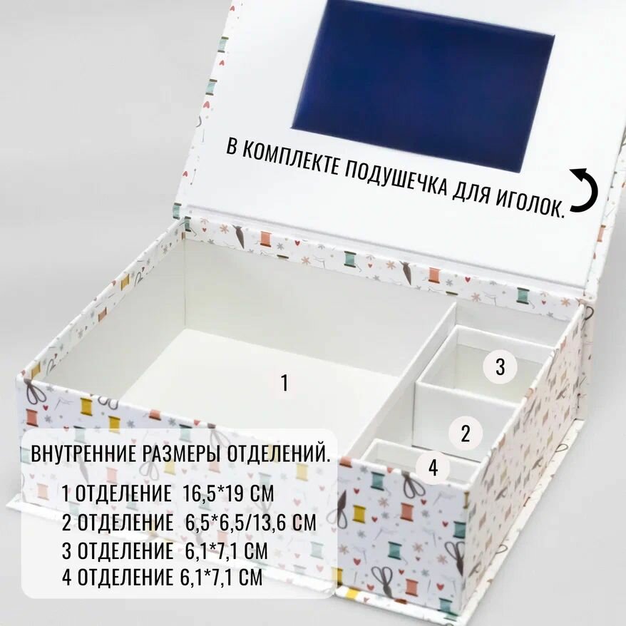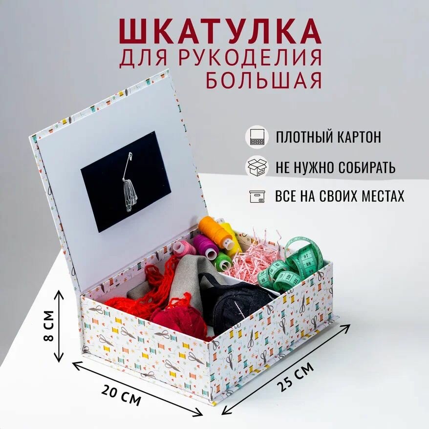 Подарочная Коробка - Шкатулка Cartonnage для рукоделия большая, 250 x 200 x 80 мм. "Ножницы", белый 1 666 ₽