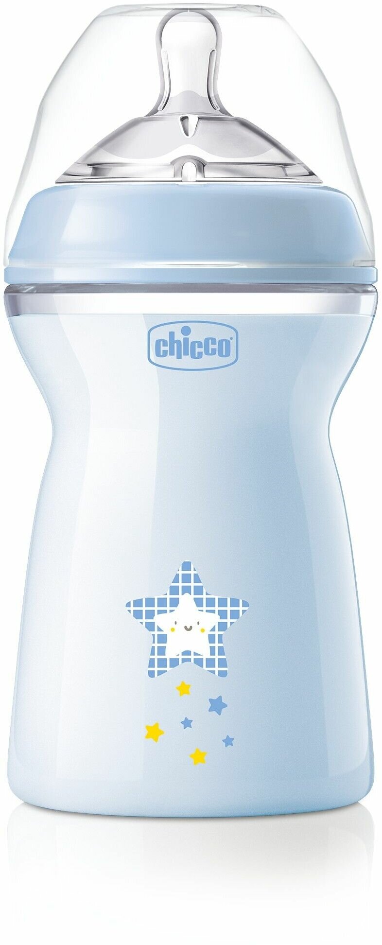Бутылочка Chicco Natural Feeling силиконовая соска, с флексорами, 6+, 330 мл, голубая NEW