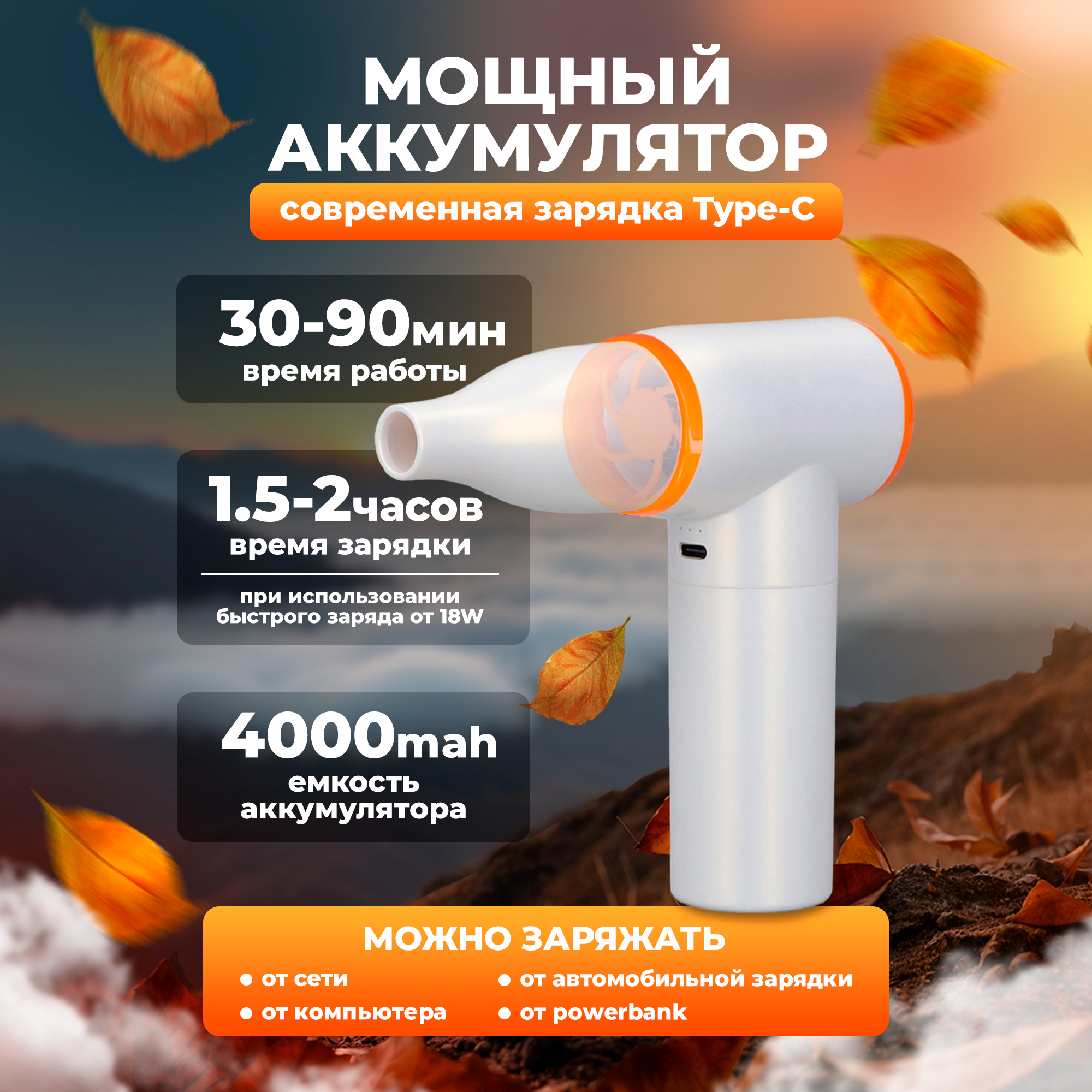 Сверхмощная воздуходувка для компьютера/электроники. Аккумуляторная, 51000об./мин, 68Вт