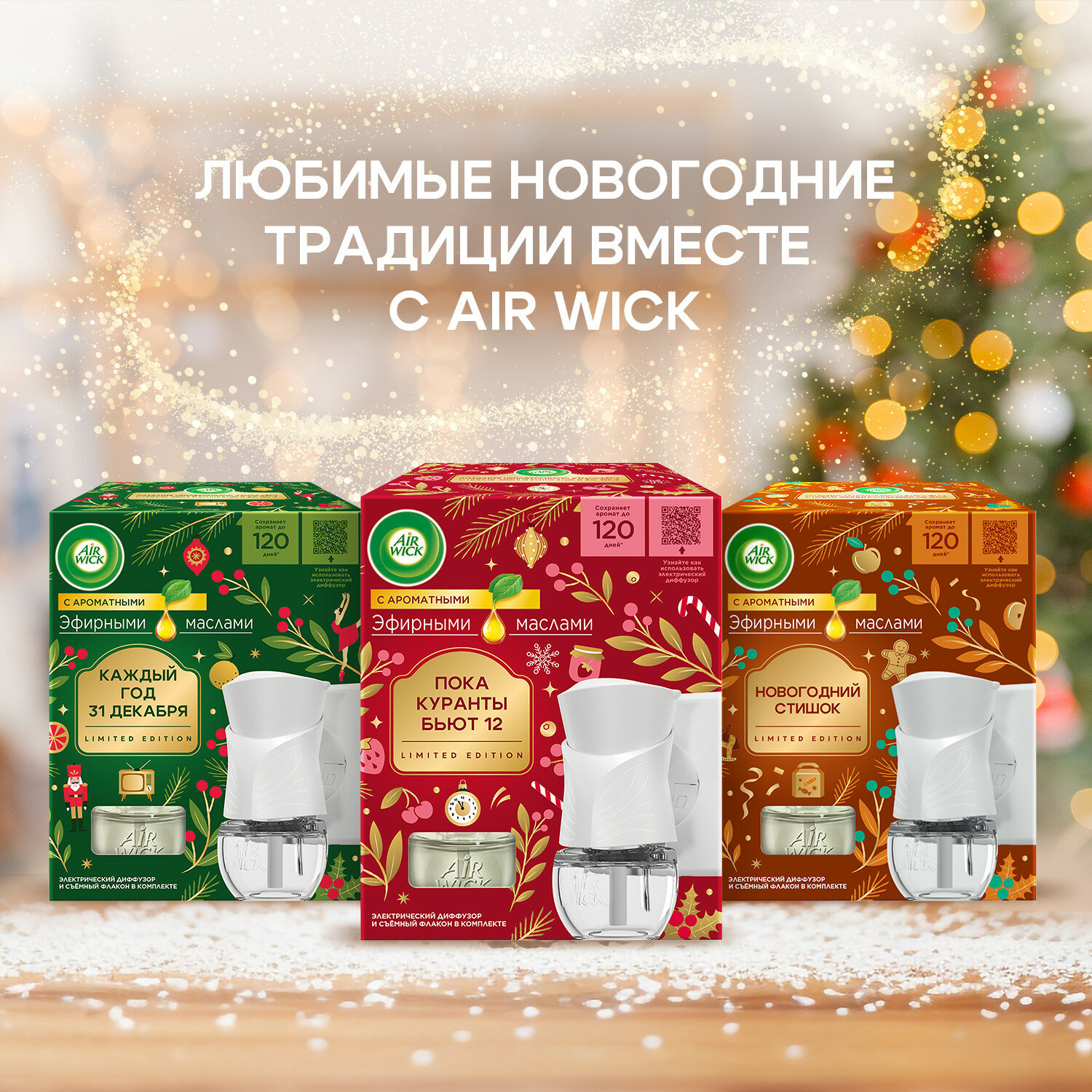 10 цен на Электрический освежитель воздуха диффузор аромамасел Air Wick со сменным флаконом Яблочный пирог, 19 мл, новогодний набор