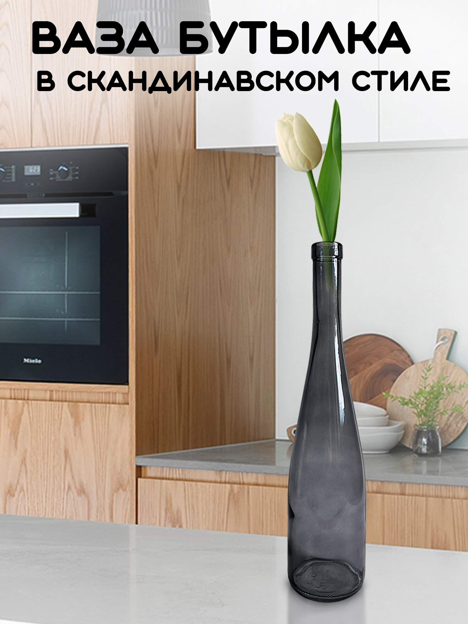 10 цен на Ваза для цветов 33 см стеклянная узкая серая