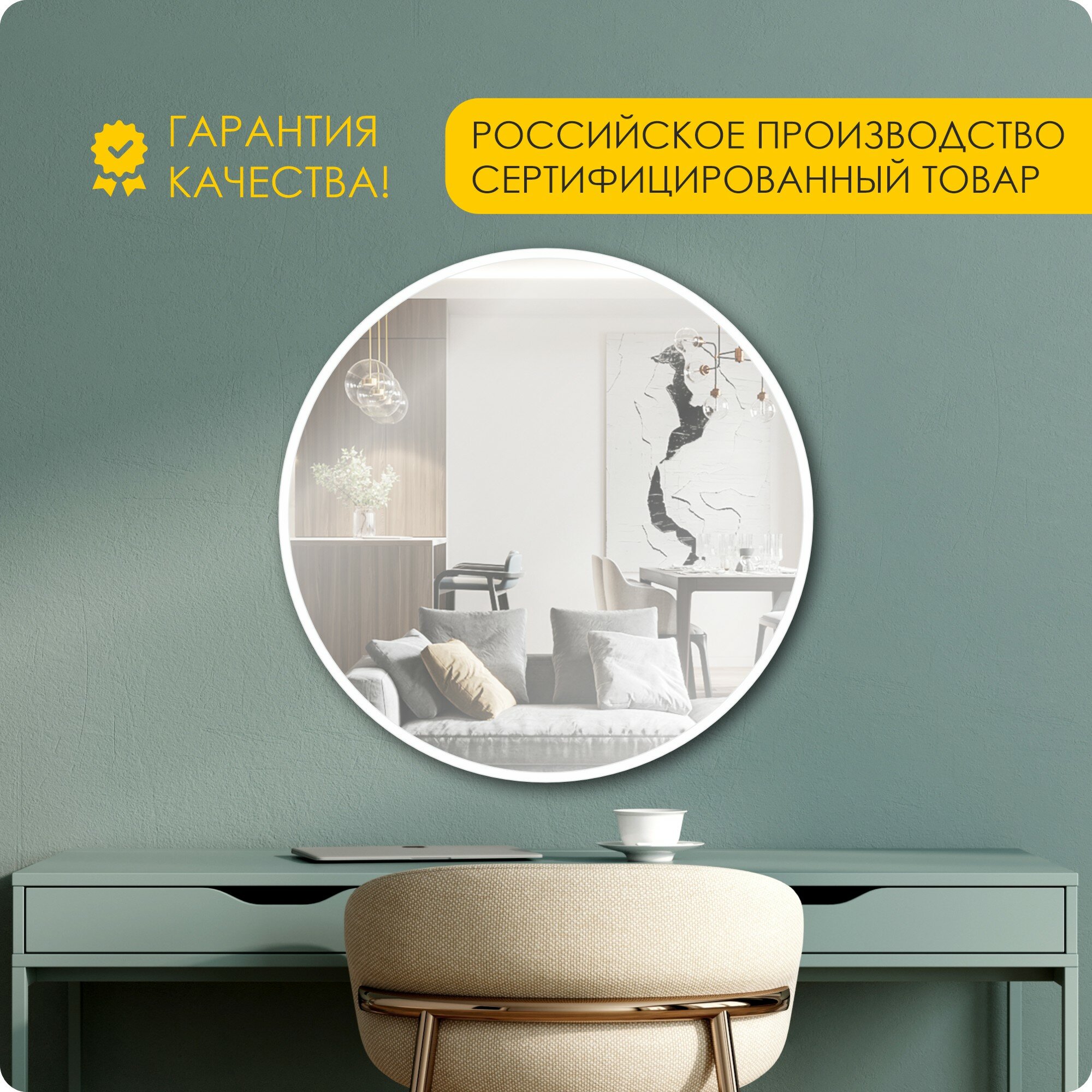Зеркало настенное, зеркало в ванную круглое 90 х 90 см , белое информация: