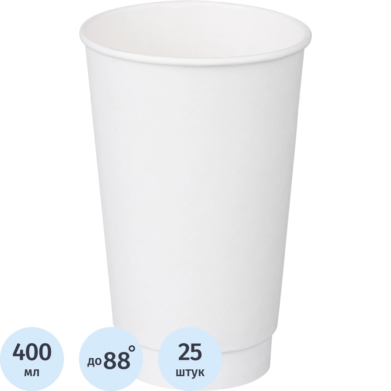 Стакан одноразовый бум. 2-сл 400мл d-90мм белый, Комус, 25шт/уп информация: