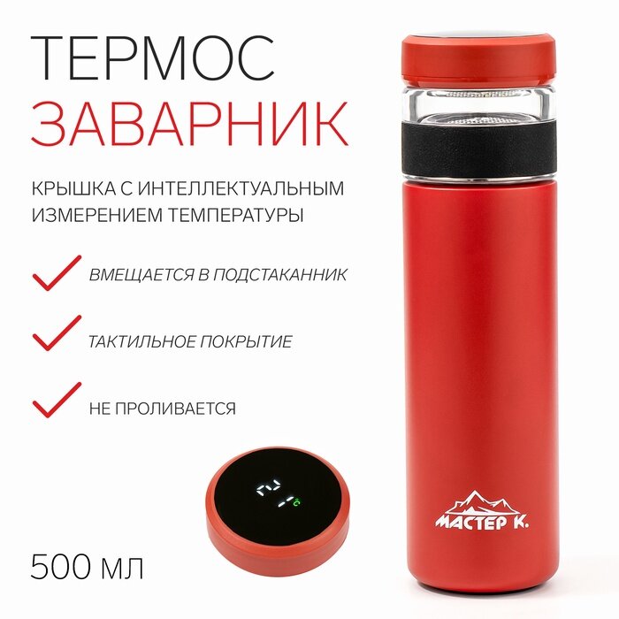 10 цен на Термос — заварник "Мастер К" Basic, 500 мл, сохраняет тепло 6 ч, термометр, красный