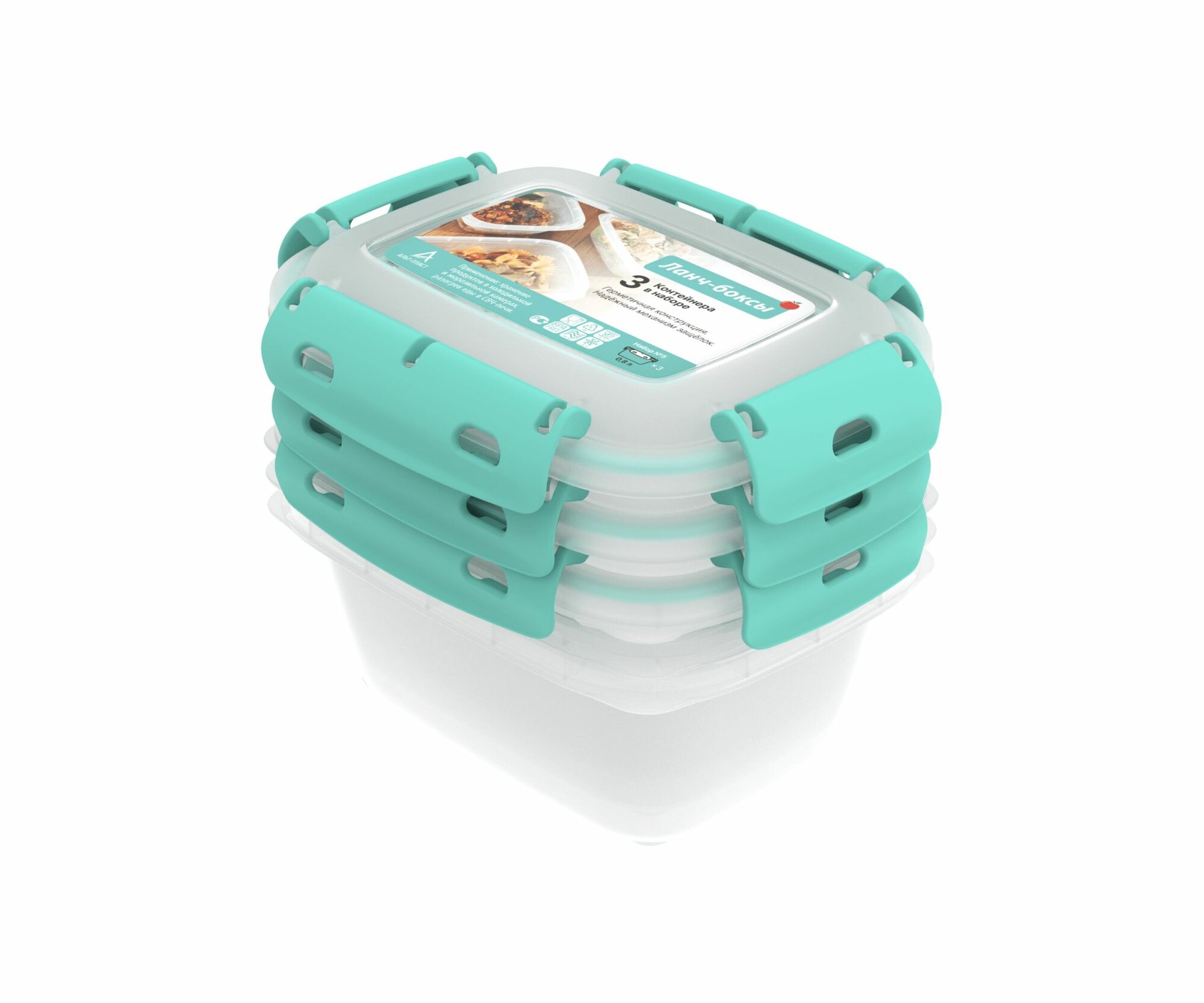 Контейнеры для хранения продуктов Альт-Пласт из пластика, с механизмом защелок, с крышками, 3шт / ланч бокс