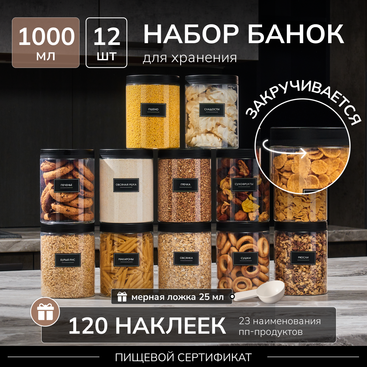 Банки для круп и хранения сыпучих продуктов Палитра Уюта емкость контейнер набор для хранения 12 шт по 1000мл информация: