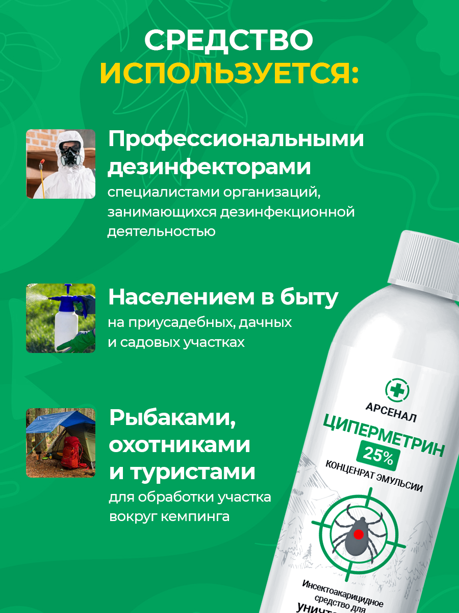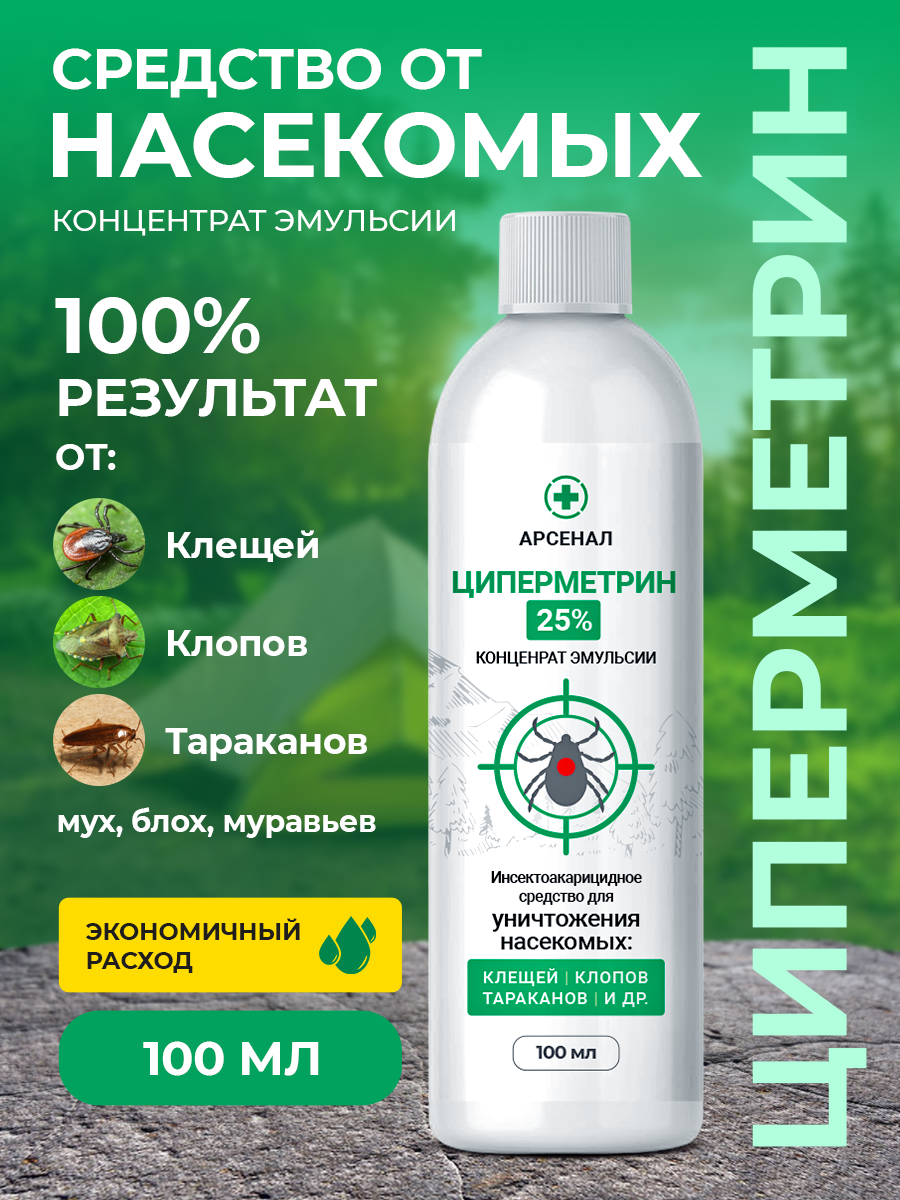 Средство от насекомых циперметрин Арсенал, концентрированный, 100 мл информация: