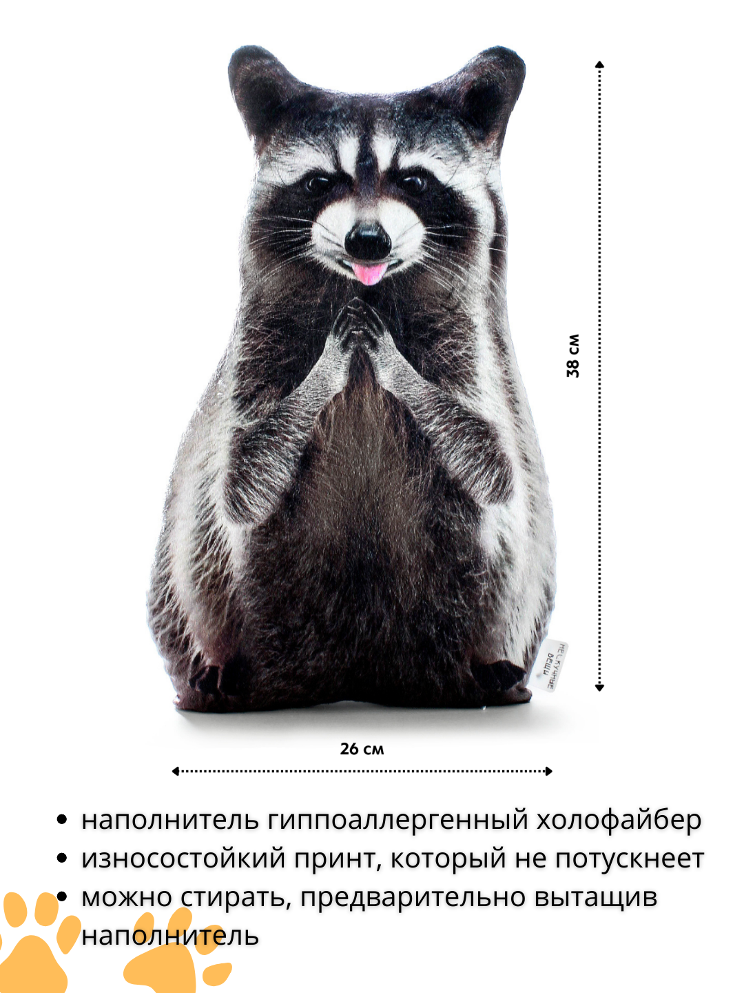 Отзывы на Реалистичная мягкая декоративная подушка-игрушка на диван Енот от бренда Нескучные вещи