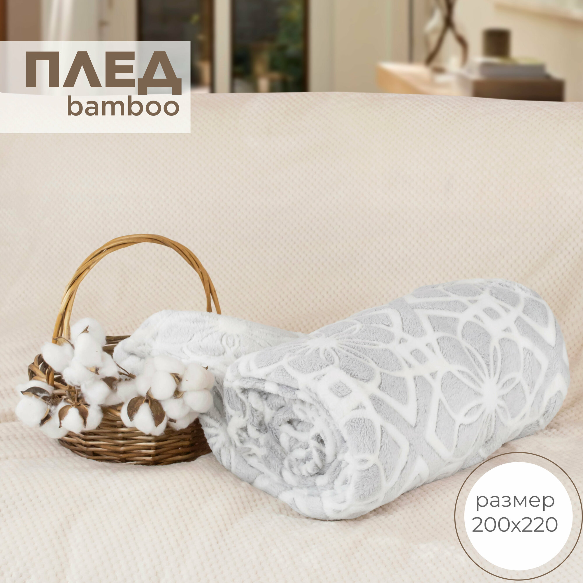 Отзывы на Плед 200х220 пушистый с цветочным узором Cleo Bamboo покрывало на кровать и диван в атласной ленте