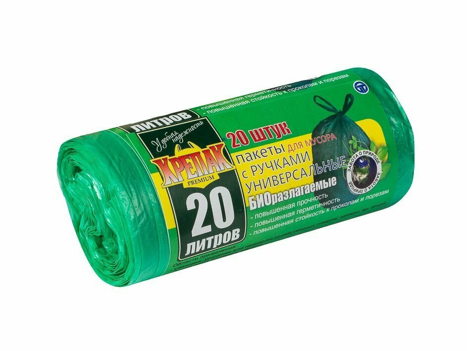 Мешки для мусора крепак "Биоразлагаемые", 20 л, с ручками, ПНД, 44х55 см, 20 шт, зеленые (1293283) информация: