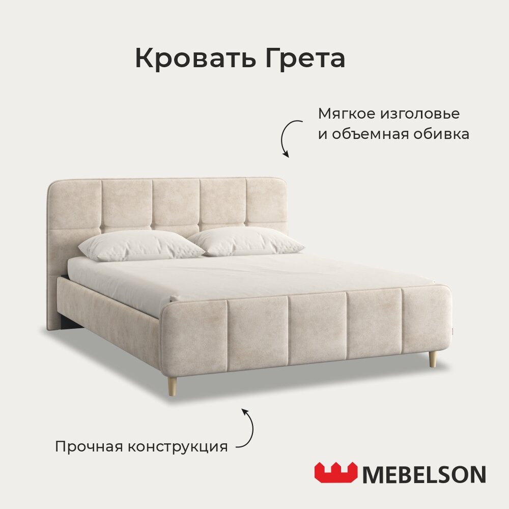 10 цен на Двуспальная кровать с основанием Грета 160х200 см, Велюр Песок Алькантара, Mebelson