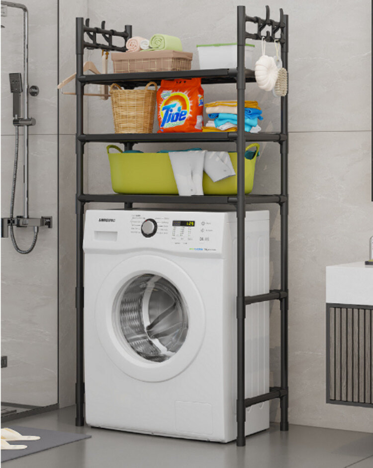 Отзывы на Стеллаж для стиральной машины, металл/пластик, чёрный, 64х26х175см Удобный стеллаж для хранения и порядка
